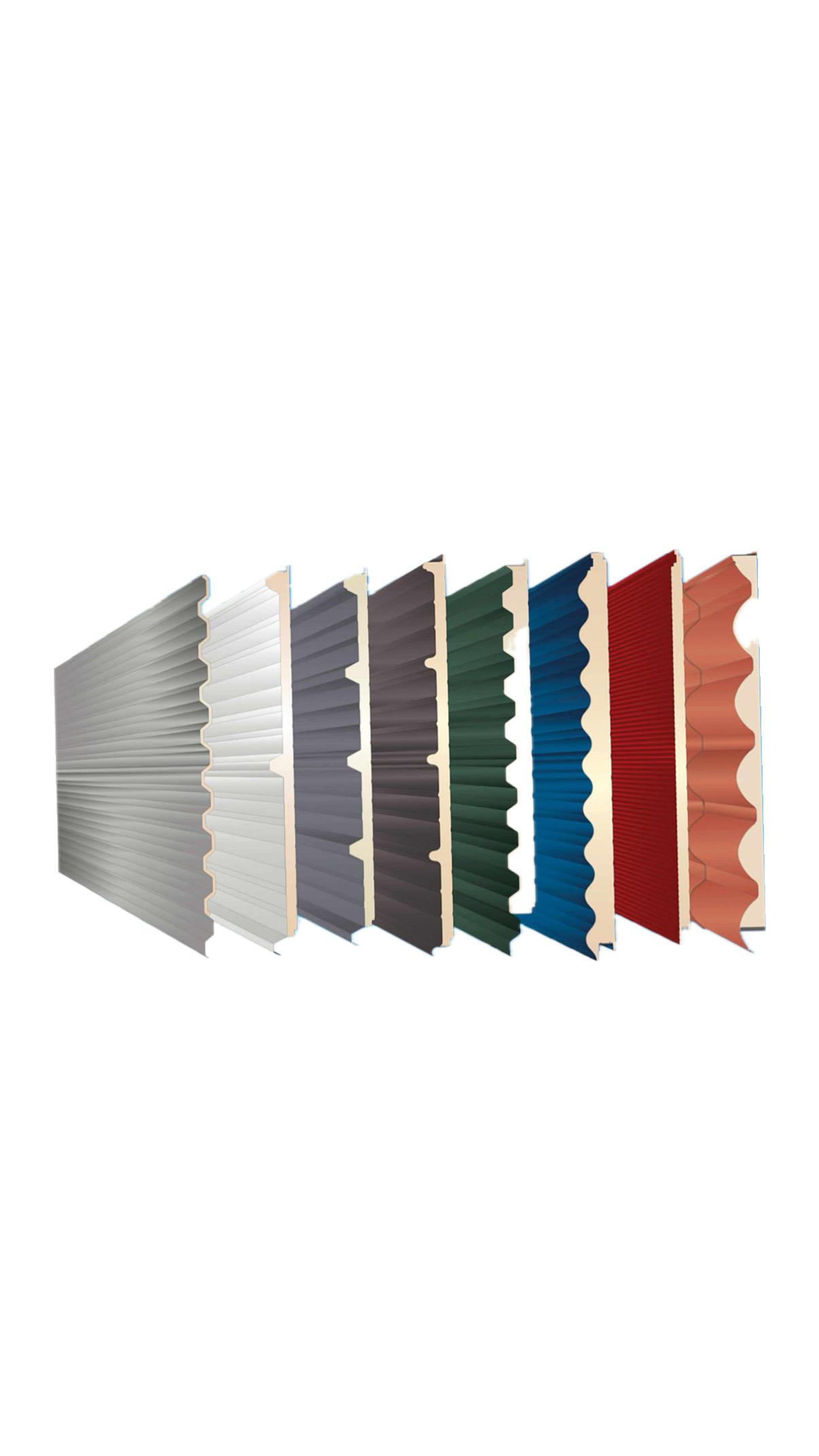 Per i diversi tipi di utilizzo, forma e spessore: pannelli coibentanti in poliuretano, pannelli coibentati con lana minarale, lastra grecate di copertura per fotovoltaico, coperture listellate.