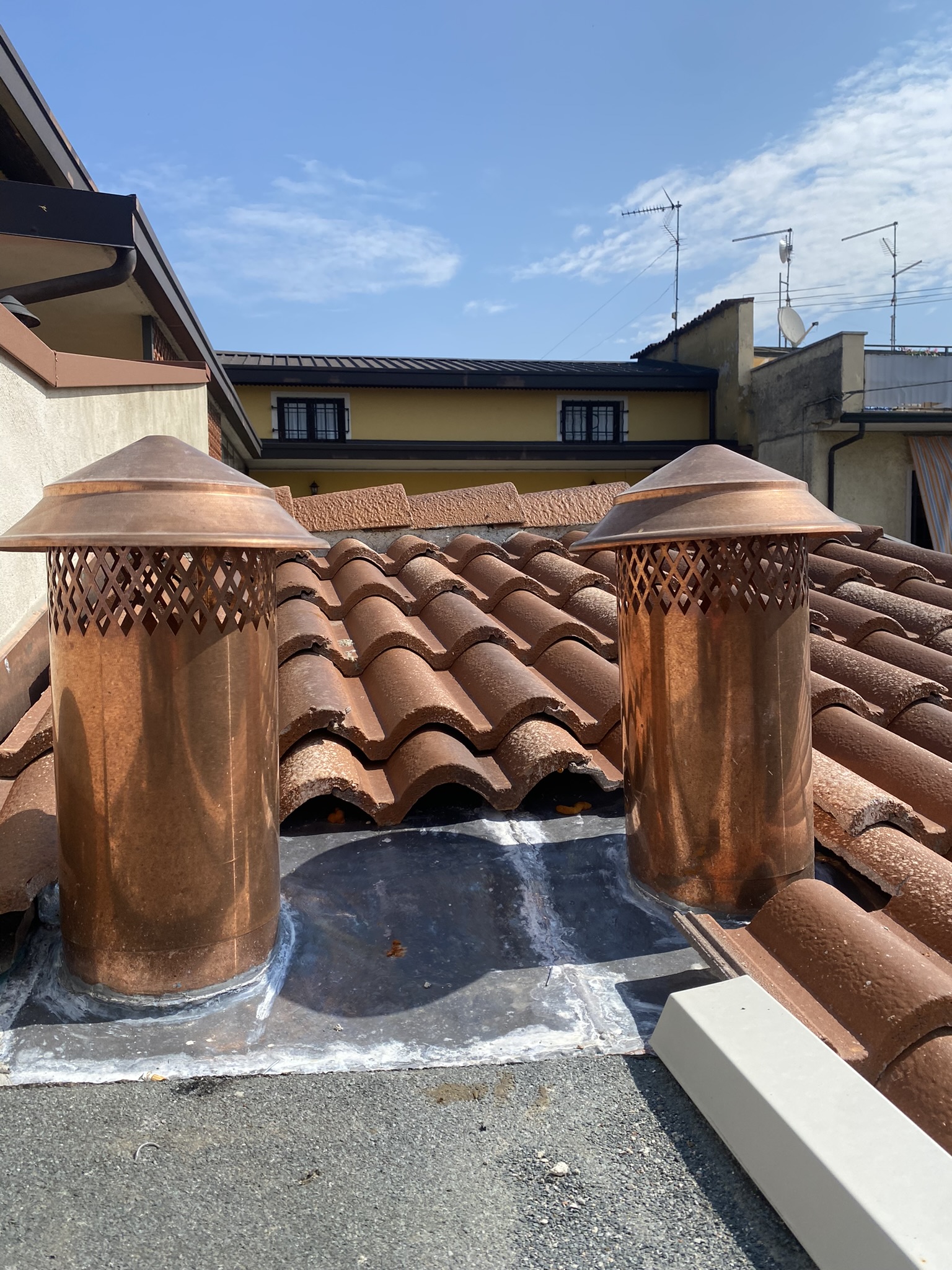 La Lattoneria Bresciana Srl realizza la produzione, fornitura e posa di camini e torrini di sfiato per abitazioni civili e per capannoni industriali con vari tipi di materiale: